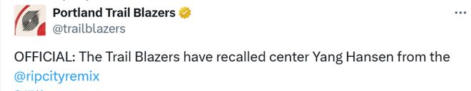 开拓者官宣召回杨瀚森:有望明日战太阳 G联赛场均14.5分11板2帽