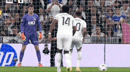 两球落后的瓦伦西亚不得不主动出击,这也给了皇马更多的机会。第42分钟,维尼修斯禁区内倒地裁判没有任何判罚,卡雷拉斯被撞倒,皇马再次获得点球。