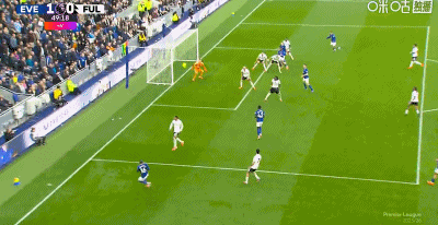 第45+4分钟,这次有了,盖伊跟进打门得分,埃弗顿1-0领先
